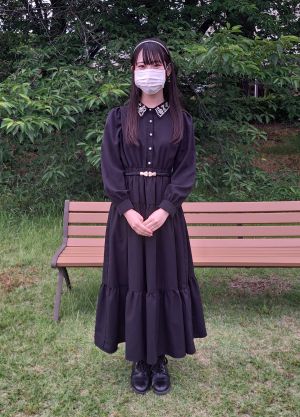 「黒のワンピースに靴なので、アクセサリーを使って暗くなりすぎないようにした。