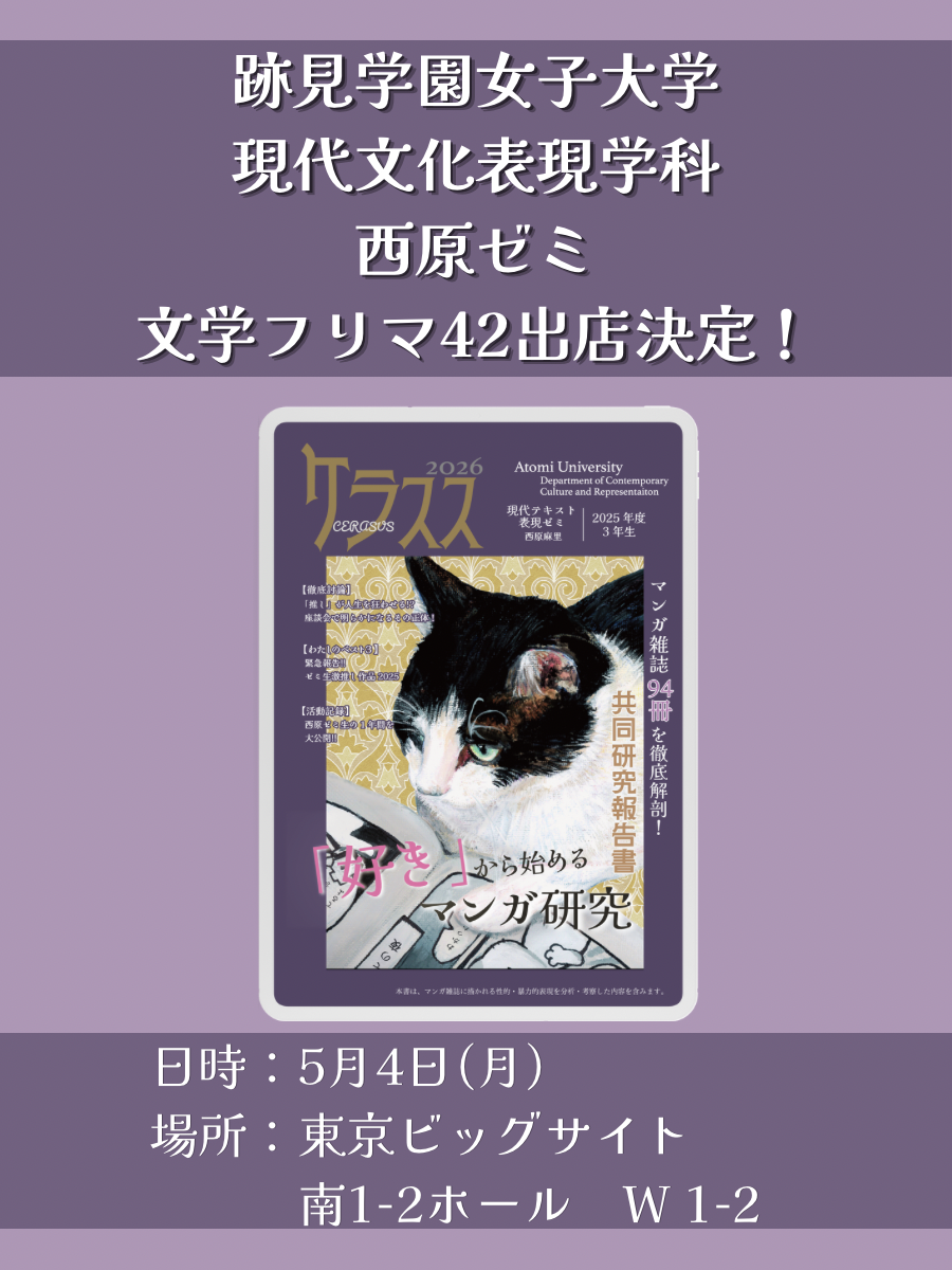 西原ゼミ:ゼミ誌『ケラスス』第3号を「文学フリマ 東京42」で頒布します!(2026.4.23掲載)