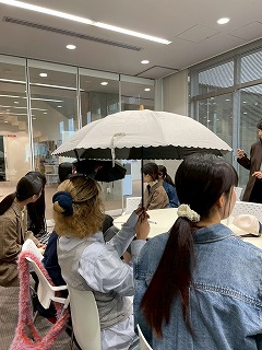 - 6月、7月 商品企画案を練る。跡見生が使っているバッグをリサーチ。 日頃、感じている傘やバッグについての「こうだったらいいのに」をまとめました