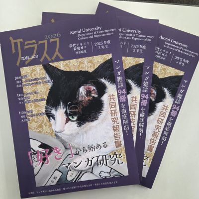 マンガを始めとするテキスト表現について考えるゼミです。各自が関心をもつ作品や作家、表現について、自分の問いを突き詰め、自分の言葉で考え語り、答えを出せるようになることが目標。そのために「推し作品のプレゼン大会」の開催や、春から夏にかけてマンガ・メディア文化をテーマとする共同研究を進めています。2025年度の共同研究のテーマは「日本で発行されているマンガ雑誌の多様性と現在」です。活動内容をまとめたゼミ誌『ケラスス』も発行しています。